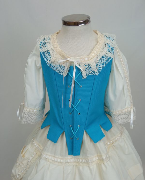 Lleva ballenas en pala delantera, escote cuadrado. Proporciona un bonito ajuste, ya que se ciñe al cuerpo mediante cordón pasado por los ojetes.