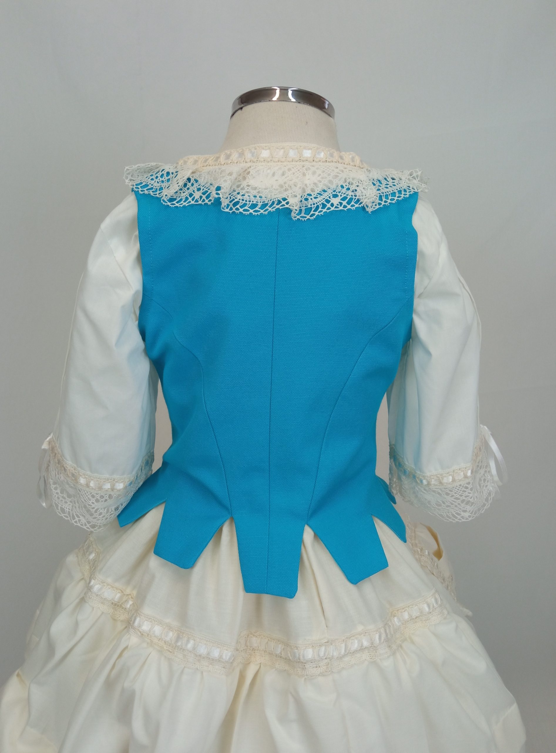 Justillo huertana confeccionado en tela ademuz con cierto brillo. Forro interior del mismo tono.