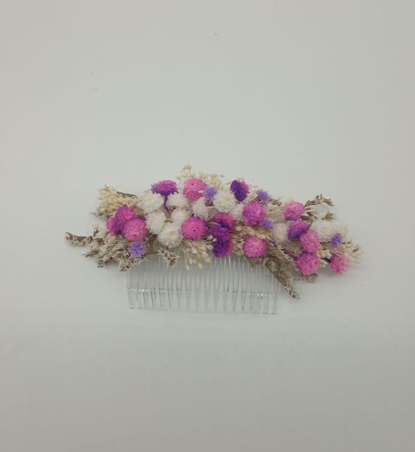 Precioso tocado de flores elaborado artesanalmente con flor preservada y artificial.
